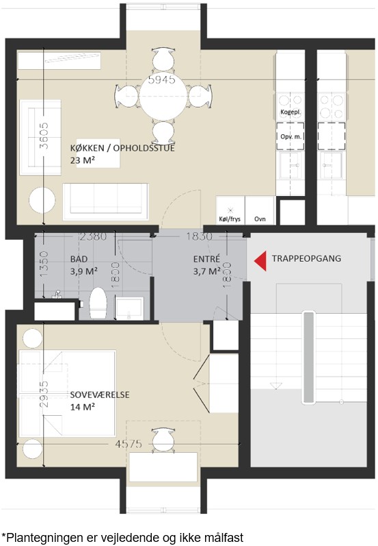 Almindelig bolig | 2 vær. | 60 m² | Indskud: 9.855 kr.
