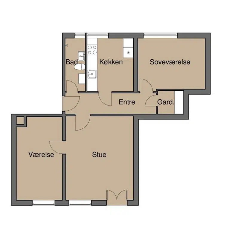 Se i afdelingens vedligeholdelsesreglement, hvilke hårde hvidevarer der er i boligerne. Det fremgår under punktet "Boligernes standard ved indflytning "
