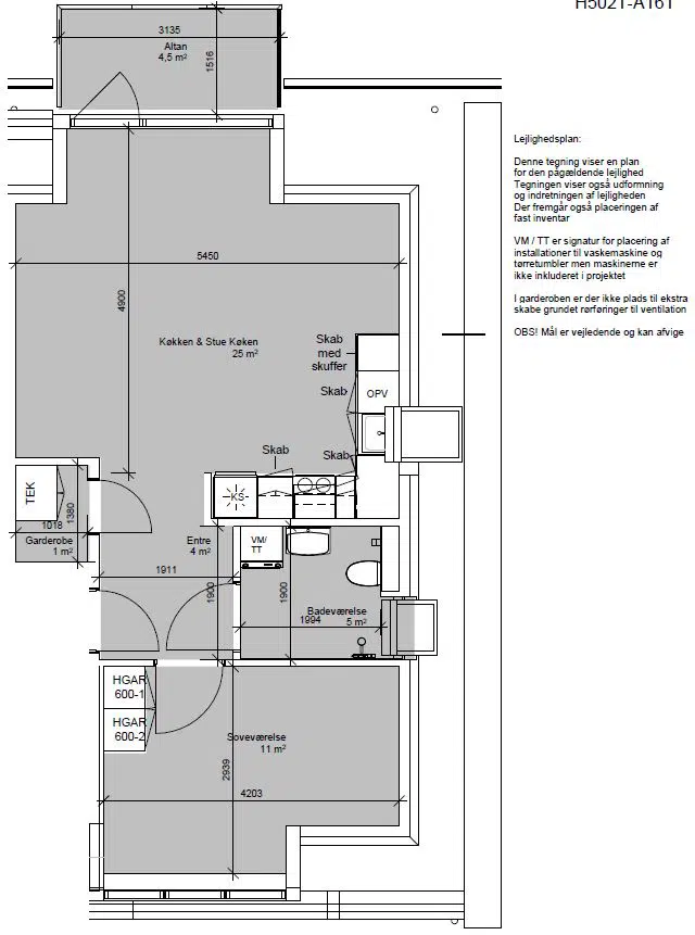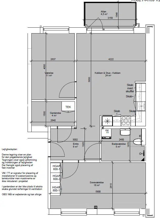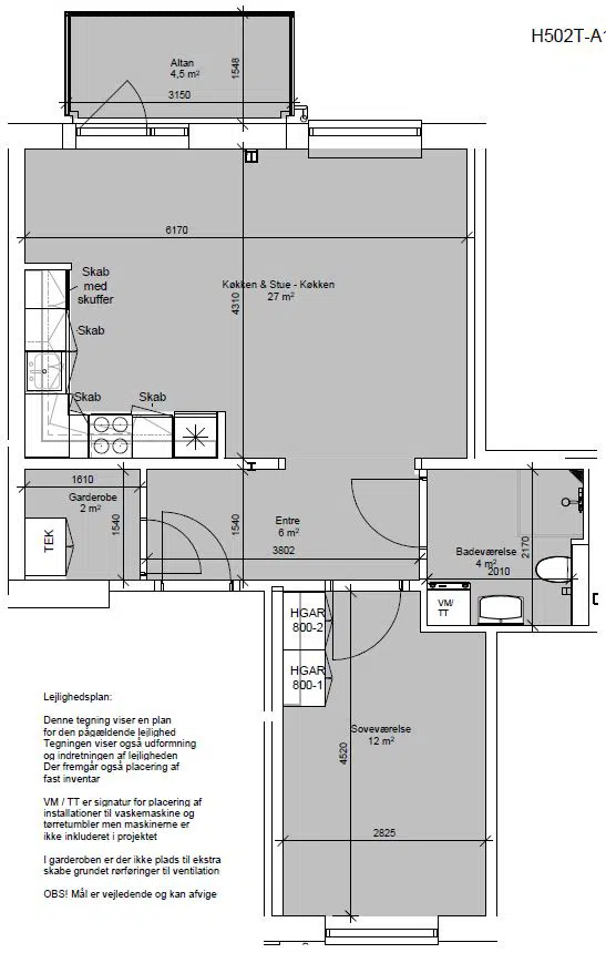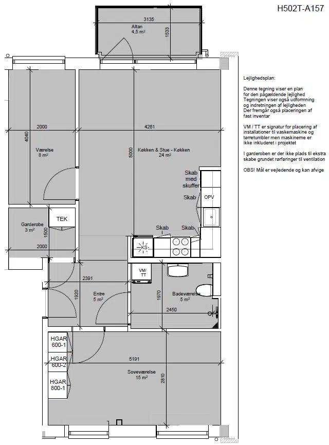 Se i afdelingens vedligeholdelsesreglement, hvilke hårde hvidevarer der er i boligerne. Det fremgår under punktet "Boligernes standard ved indflytning "