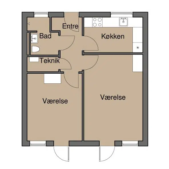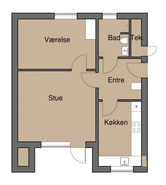 Se i afdelingens vedligeholdelsesreglement, hvilke hårde hvidevarer der er i boligerne. Det fremgår under punktet "Boligernes standard ved indflytning "