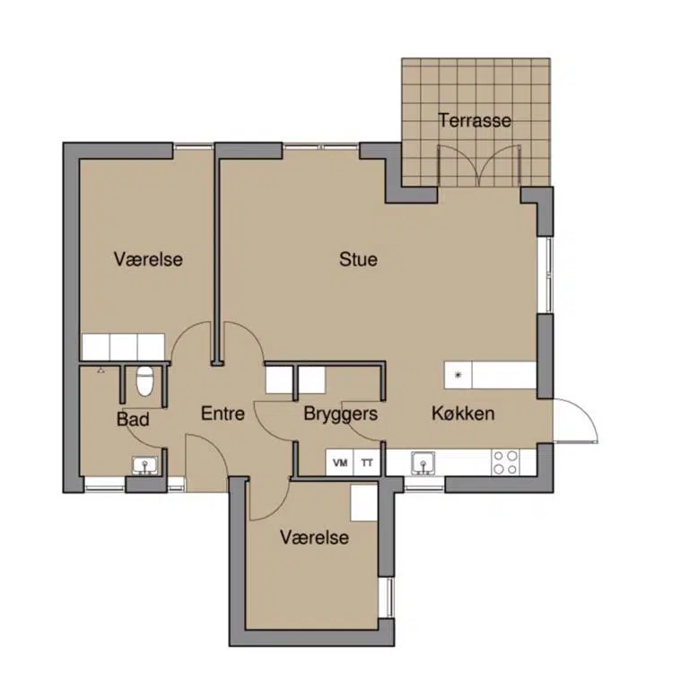 Se i afdelingens vedligeholdelsesreglement, hvilke hårde hvidevarer der er i boligerne. Det fremgår under punktet "Boligernes standard ved indflytning "